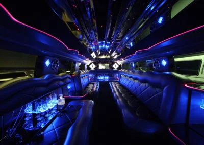 The Hummer Limo features spacious interiors fitted with premium leather seating and ambient lighting and a top notch a entertainment system. Passengers will enjoy top-of-the-line sound capabilities with flat-panel TVs and an in-house bar area, making it a perfect celebratory vehicle on the road.