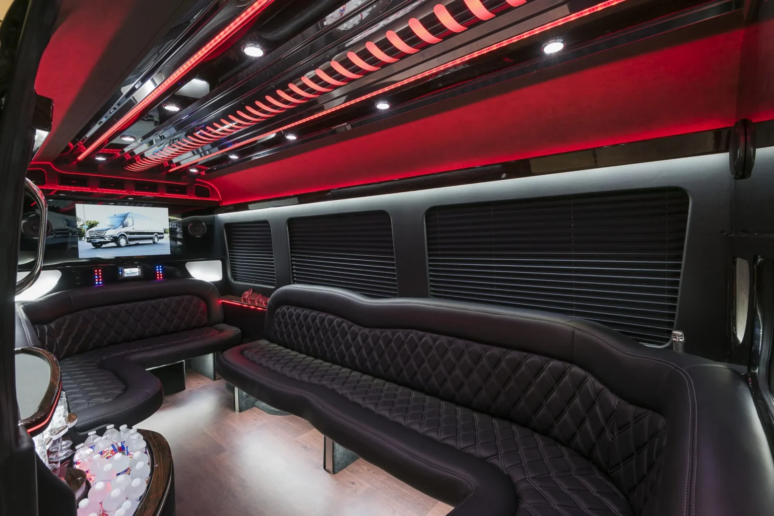 With space for 10 standard-sized bags, the Sprinter Limo Van Vehicle ensures your luggage is safely because they maintain a spacious cabin for passengers. It’s perfect for short trips or when traveling light, without compromising any comfort.